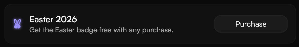 The Easter 2026 badge is awarded to users who have purchased any product during the 2026 Easter Sale.